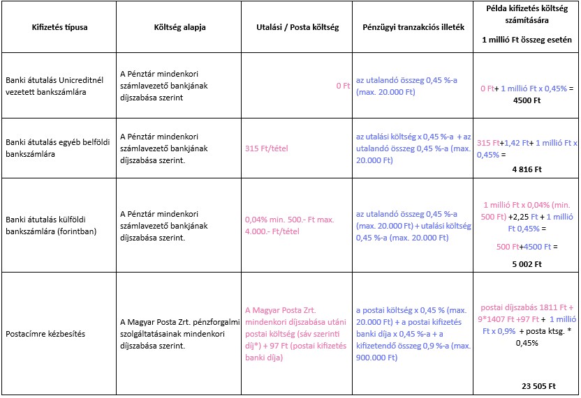 Az utalás, kifizetés tényleges költségének megállapítására és levonására az alábbiak szerint kerül sor a 2025.12.01. kifizetési naptól kezdődően:
